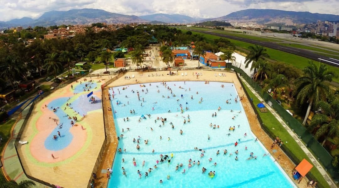 Parque acuático más grande de la ciudad de Medellín, tendrás la fortuna de enamorarte de sus grandes zonas verdes, de sus senderos ecológicos y refrescarte en sus grandiosas piscinas. También, podrás observar los aviones que aterrizan en el aeropuerto, su cercanía hace que sea privilegiada la vista. Es un sitio que les encantará a tus pequeños y a ti.